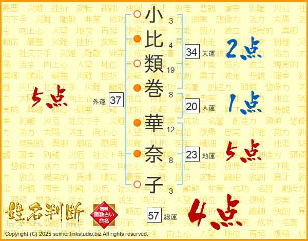 小(3画)比(4画)類(19画)巻(8画) 華(12画)奈(8画)子(3画)