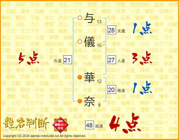 与儀華奈さんの総運は48画の4点!