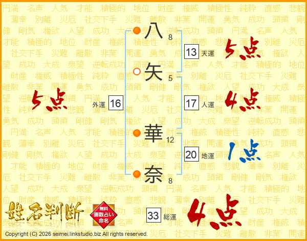八矢華奈さんの総運は33画の4点!