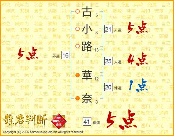 古小路華奈さんの総運は41画の5点!