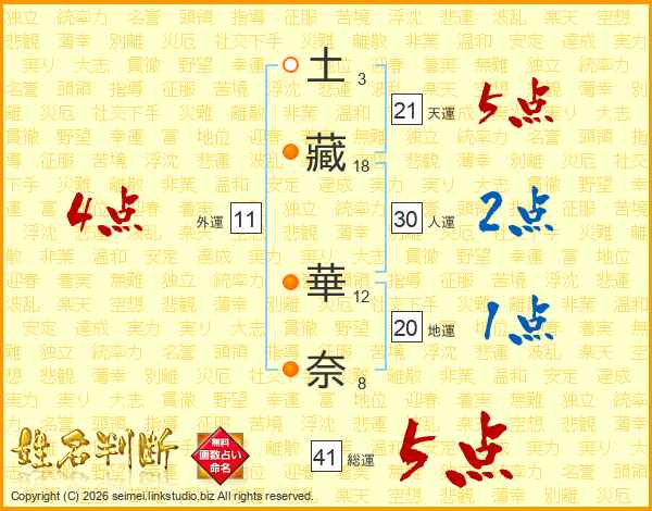 土藏華奈さんの総運は41画の5点!
