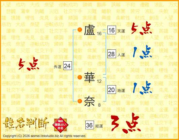 盧華奈さんの天運は16画の5点!