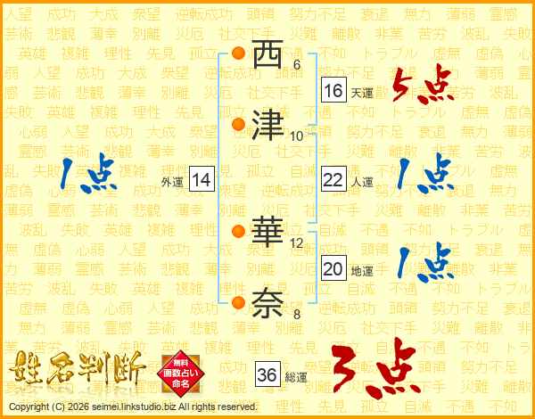 西津華奈さんの人運は22画の1点!