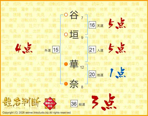 谷垣華奈さんの外運は15画の4点!