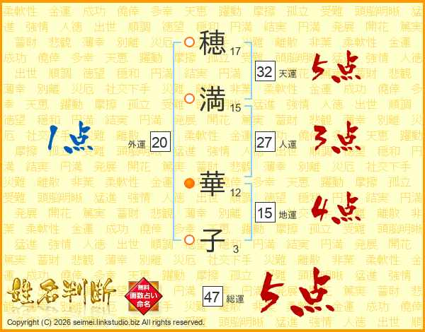 穂(17画)満(15画) 華(12画)子(3画)