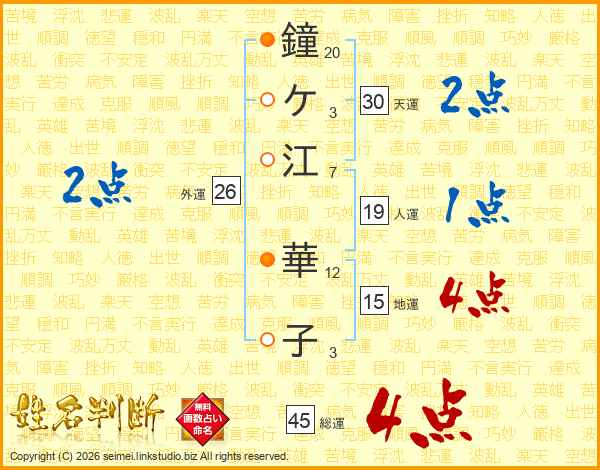 鐘ケ江華子さんの総運は45画の4点!