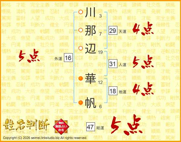 川那辺華帆さんの総運は47画の5点!