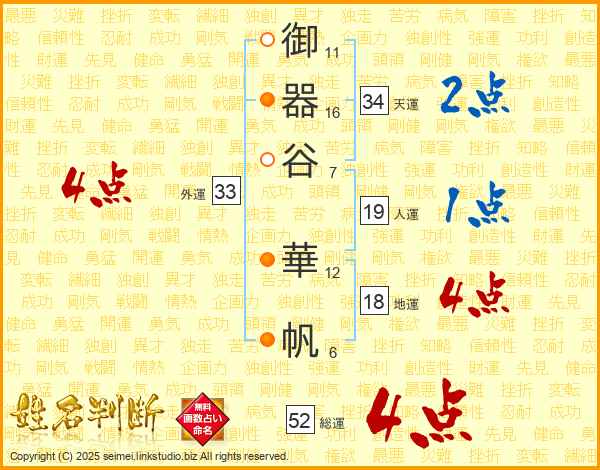 御器谷華帆さんの外運は33画の4点!