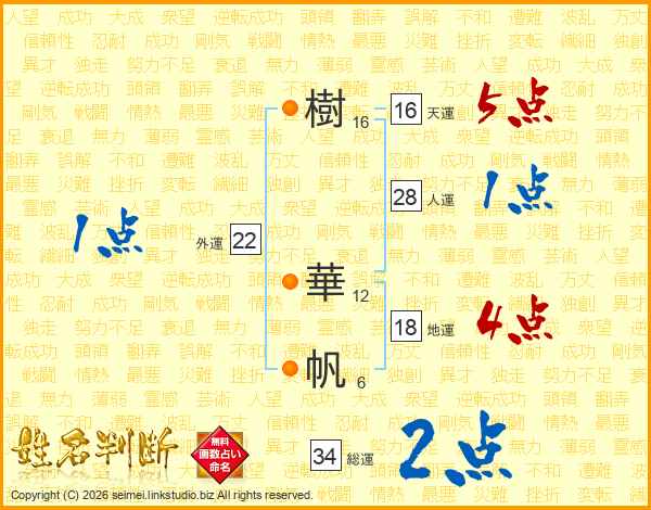 樹華帆さんの総運は34画の2点!