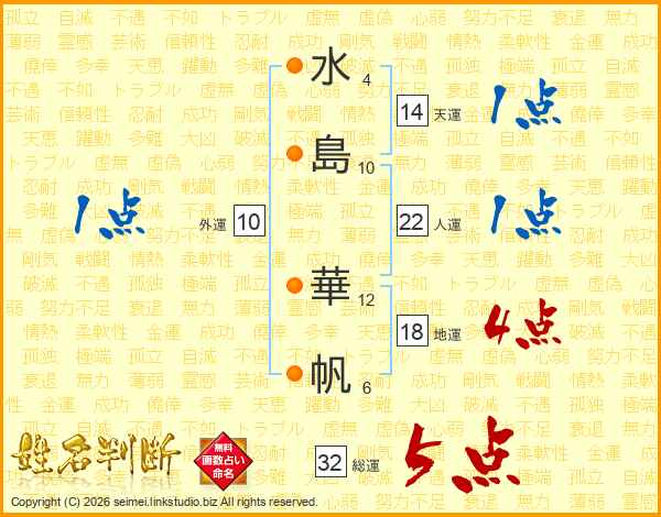 水島華帆さんの総運は32画の5点!
