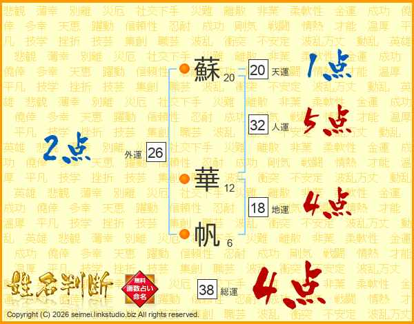 蘇華帆さんの総運は38画の4点!