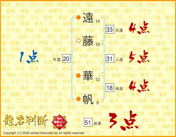 遠(14画)藤(19画) 華(12画)帆(6画)