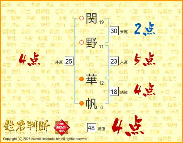 関野華帆さんの天運は30画の2点!