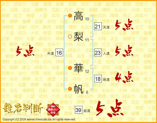 高梨華帆さんの外運は16画の5点!