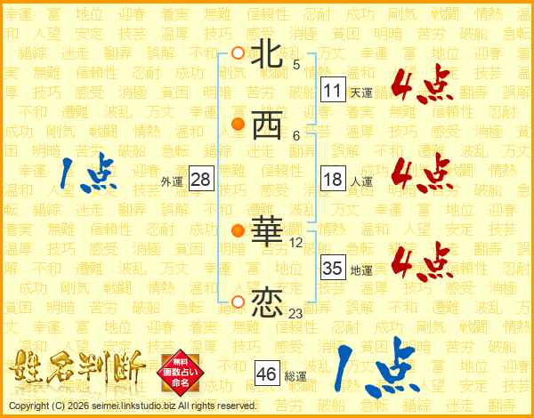 北西華恋さんの人運は18画の4点!