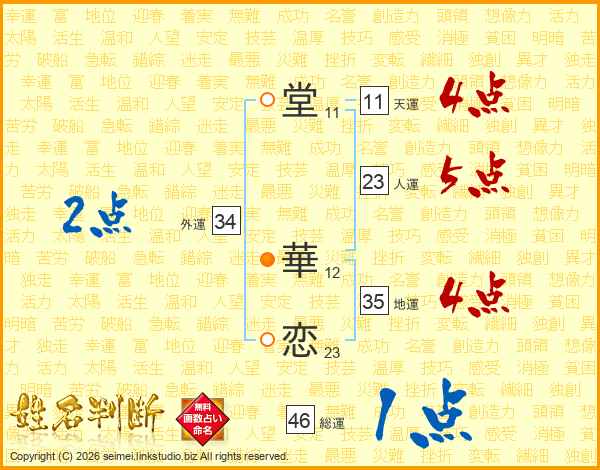 堂華恋さんの総運は46画の1点!