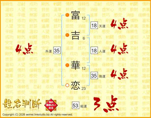 富(12画)吉(6画) 華(12画)恋(23画)