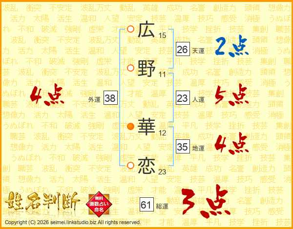 広野華恋さんの外運は38画の4点!