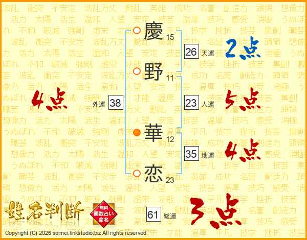 慶野華恋さんの外運は38画の4点!