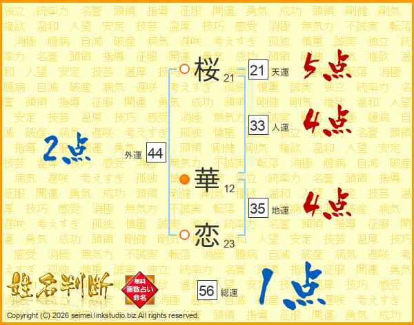 桜華恋さんの人運は33画の4点!