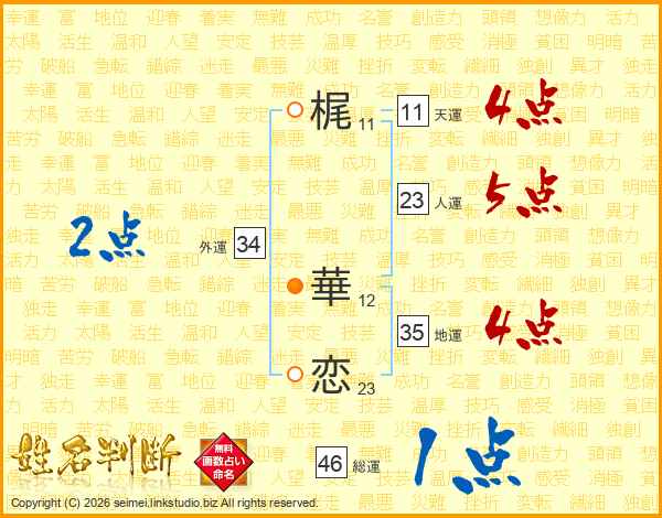 梶(11画) 華(12画)恋(23画)