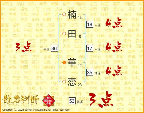 楠(13画)田(5画) 華(12画)恋(23画)