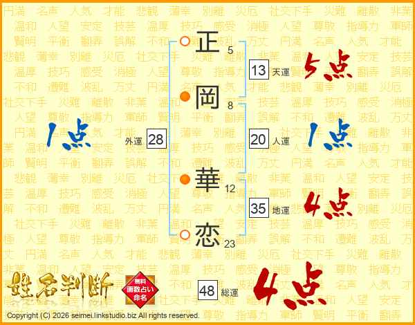 正岡華恋さんの総運は48画の4点!