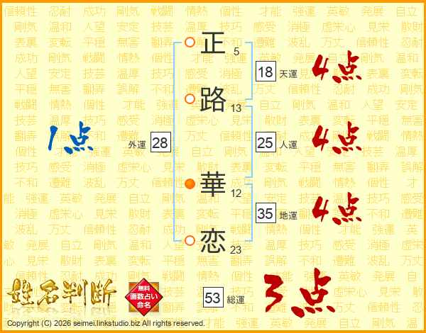 正路華恋さんの人運は25画の4点!