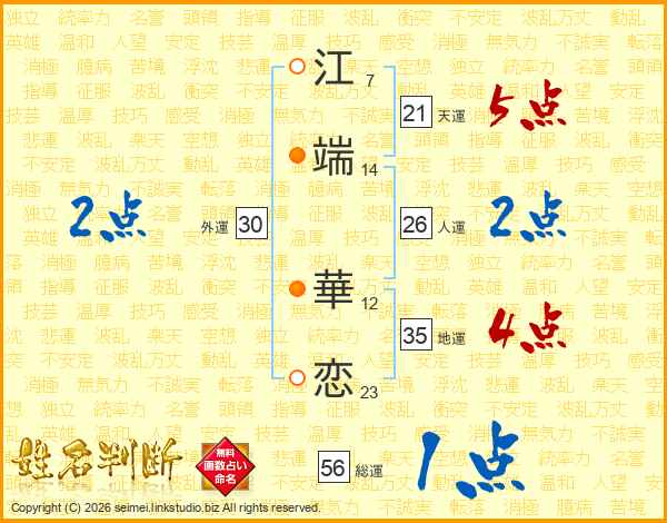 江端華恋さんの総運は56画の1点!