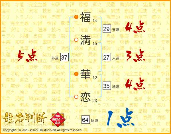 福(14画)満(15画) 華(12画)恋(23画)