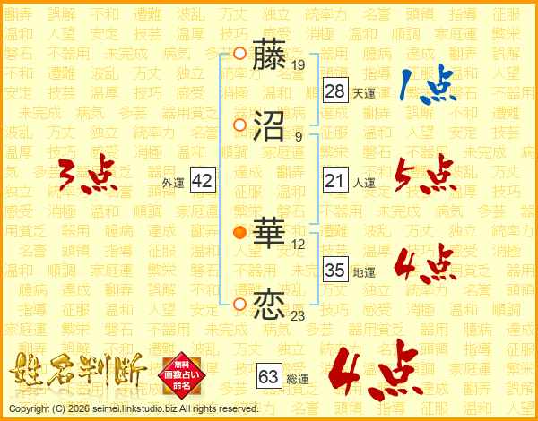 藤沼華恋さんの総運は63画の4点!