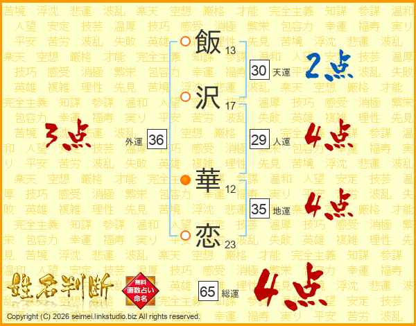 飯(13画)沢(17画) 華(12画)恋(23画)