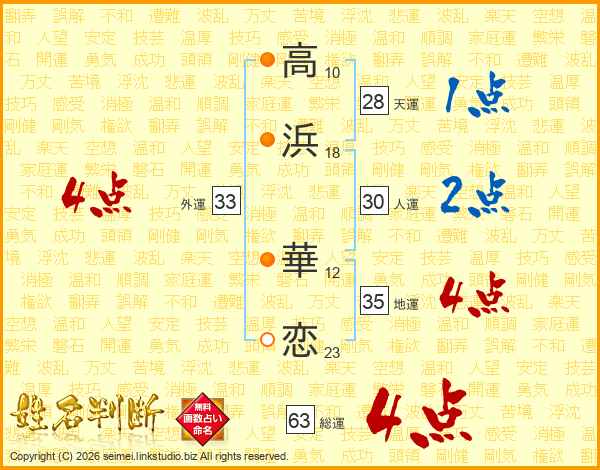 高浜華恋さんの総運は63画の4点!