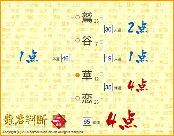 鷲谷華恋さんの総運は65画の4点!
