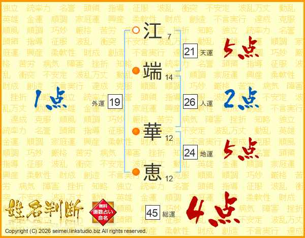 江端華恵さんの総運は45画の4点!