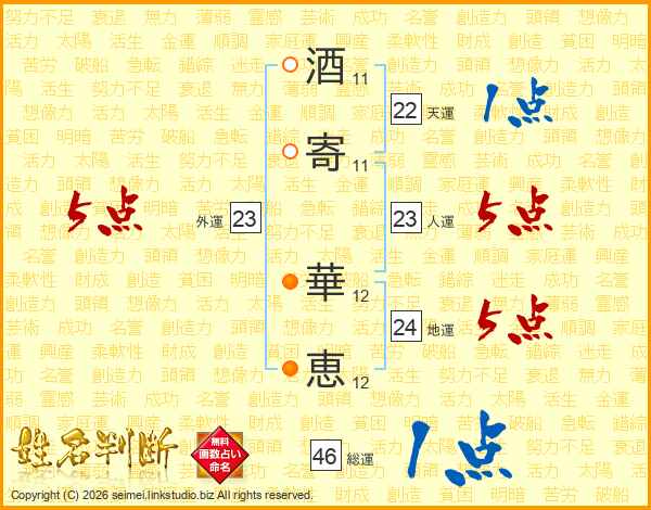 酒寄華恵さんの総運は46画の1点!