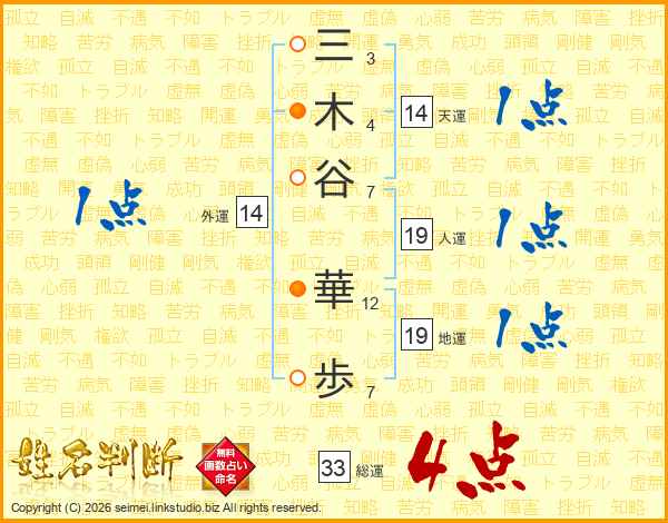 三(3画)木(4画)谷(7画) 華(12画)歩(7画)