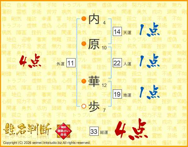 内(4画)原(10画) 華(12画)歩(7画)