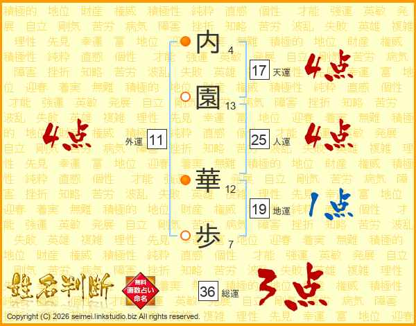 内(4画)園(13画) 華(12画)歩(7画)