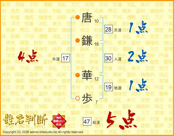 唐鎌華歩さんの総運は47画の5点!