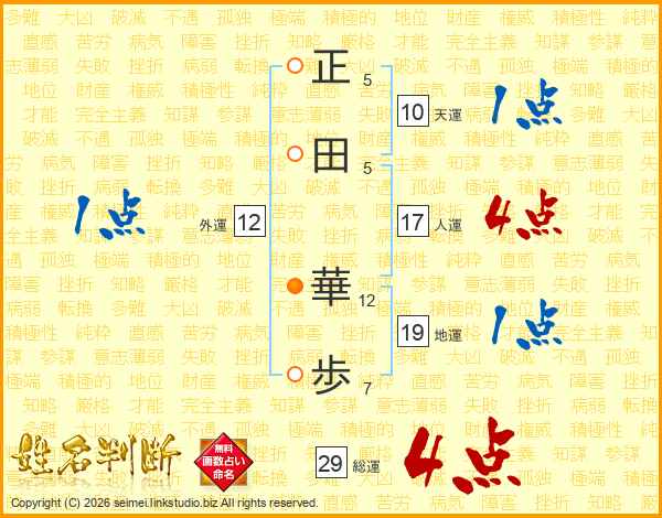 正田華歩さんの総運は29画の4点!