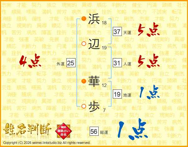 浜辺華歩さんの総運は56画の1点!