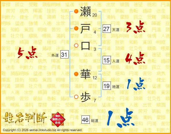 瀬戸口華歩さんの外運は31画の5点!