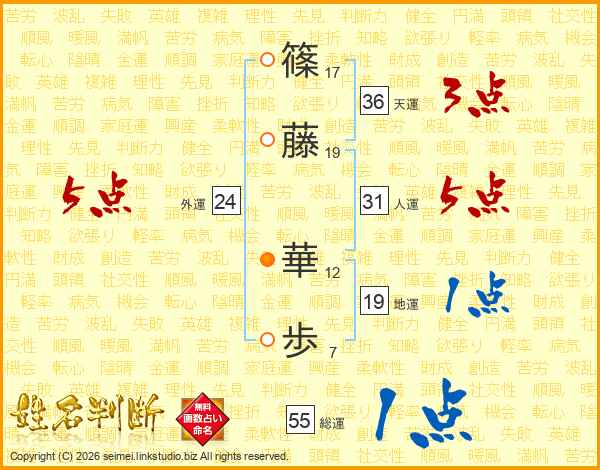 篠(17画)藤(19画) 華(12画)歩(7画)