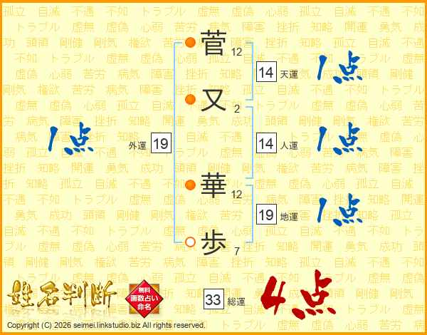 菅又華歩さんの人運は14画の1点!