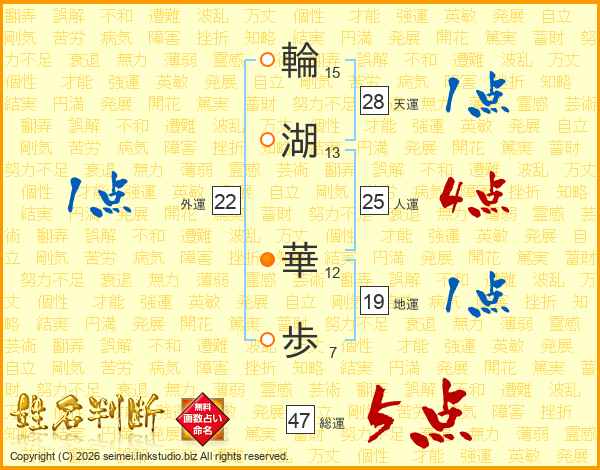 輪湖華歩さんの総運は47画の5点!