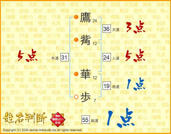 鷹觜華歩さんの外運は31画の5点!