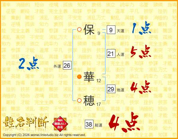 保華穂さんの総運は38画の4点!