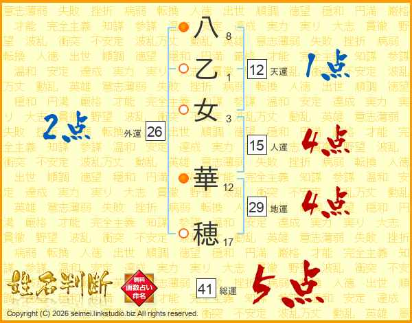 八乙女華穂さんの総運は41画の5点!