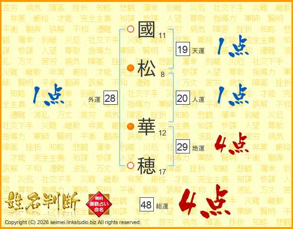 國松華穂さんの総運は48画の4点!